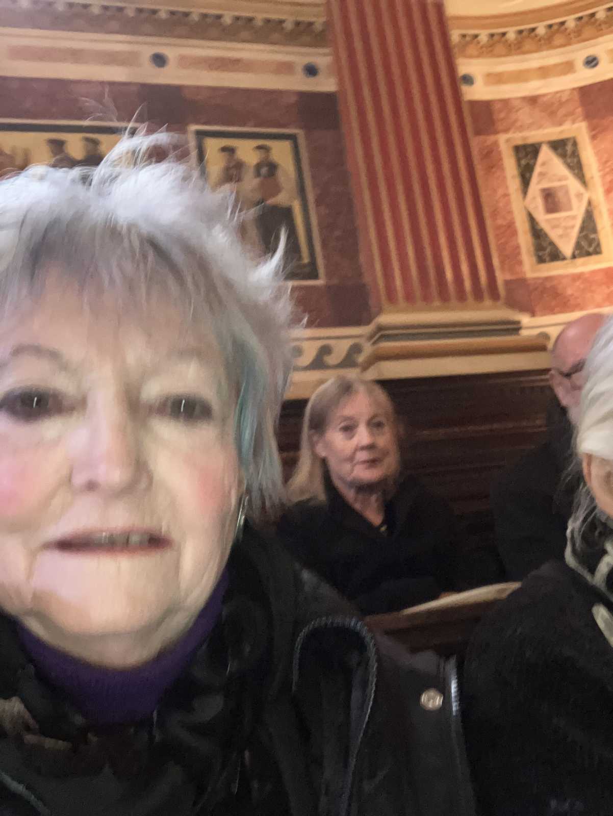 Thursday was like that for me. The film producer Victor Glynn suggested I be an extra in the new film his son Phin Glynn is producing. The lead role in & Sons is taken by Bill Nighy. We were in the funeral scene, shot in the delightful Worcester College Chapel. Sat behind me was Chris Gray and his wife Rosemary (Rosemary is in the pic) Chris was editor of Weekend during the ten years that I wrote reviews for it. Thanks to him I met the artist Qu Leilei when I reviewed Everyone’s Life is an Epic for the magazine. I’d say ‘thank you, Chris’ but it led to ten years work and this